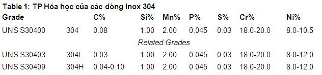 Loại Inox 304L là loại inox có hàm lượng Carbon thấp (Chữ L ký hiệu cho chữ Low, trong tiếng Anh nghĩa là thấp).304L được dùng để tránh sự ăn mòn ở những mối hàn quan trọng. Còn loại Inox 304H là loại có hàm lượng Carbon cao hơn 304L, được dùng ở những nơi đòi hỏi độ bền cao hơn. Cả Inox 304L và 304H đều tồn tại ở dạng tấm và ống, nhưng 304H thì ít được sản xuất hơn.